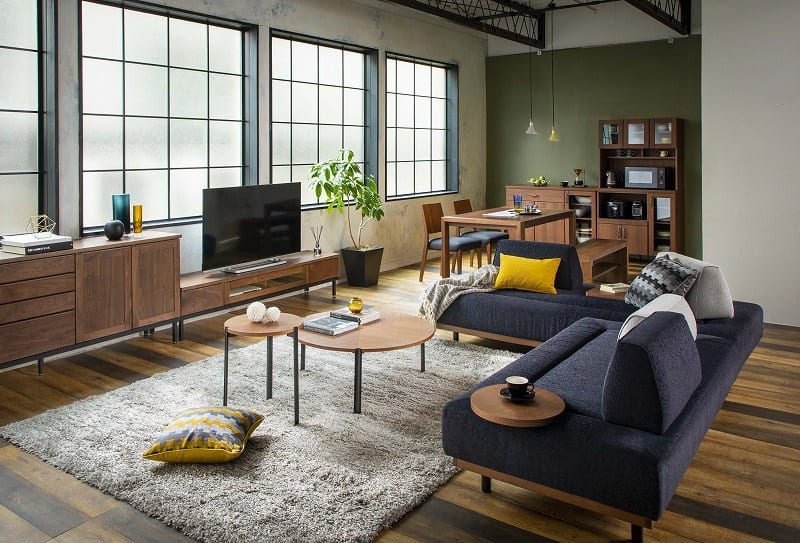 次に「ラグ」も有効です。床に敷くだけで空間の印象が変わり、部屋を広く見せる効果や温かみをプラスする効果もあります。ラグは家具の色に合わせるのはもちろん、アクセントとしてあえて違う色を選ぶのも効果的です。