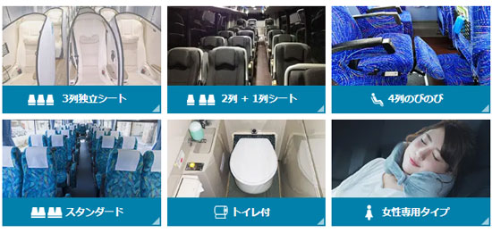 「リクライニングシートがいい」「女性専用席が安心」「トイレ付きバスがいい」など、こだわり条件で探せるのも便利です。